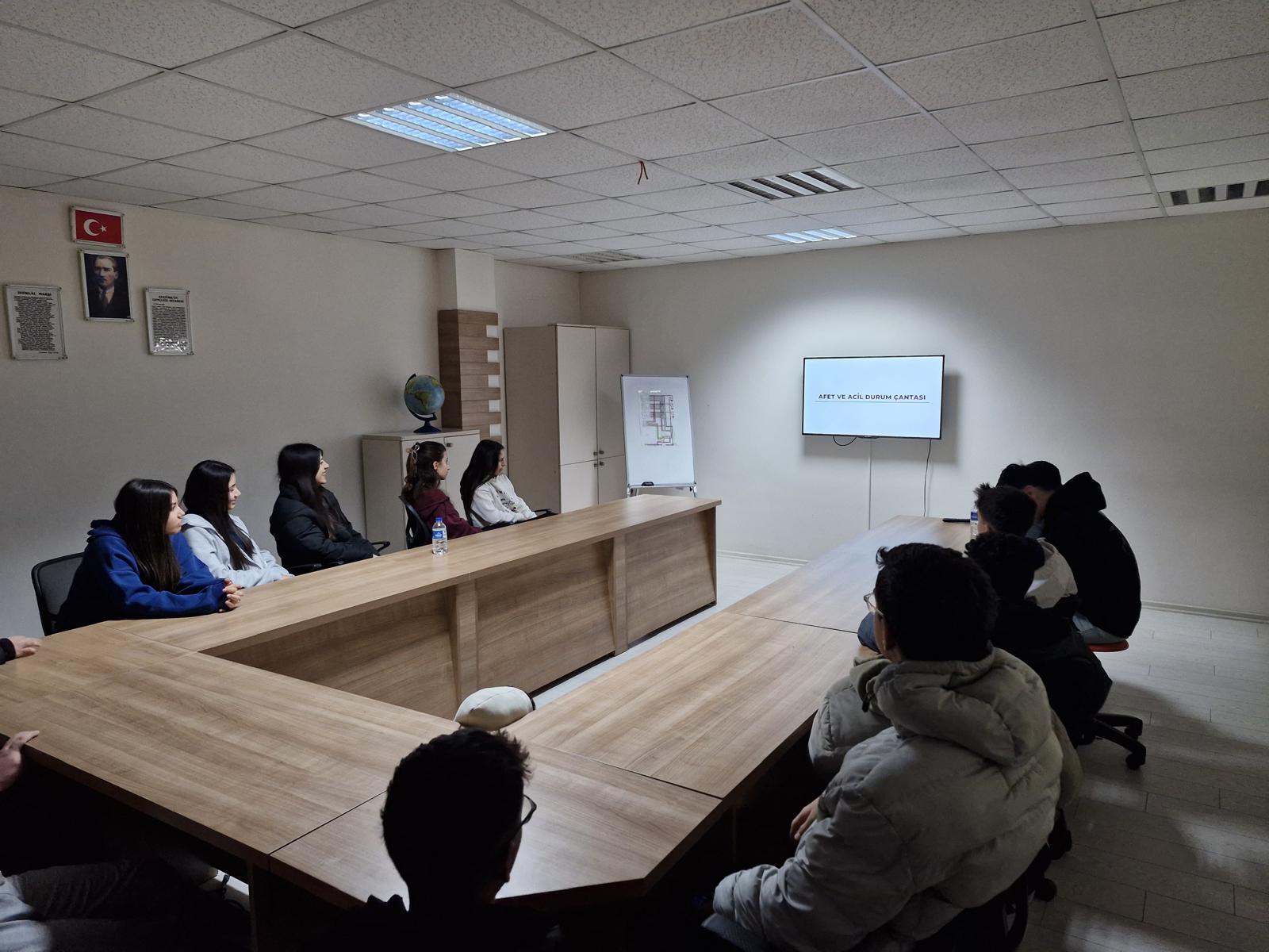 Ülkemizde oluşan deprem ve yangınlardan en az seviyede etkilenmek herhangi bir olumsuzluk anında nasıl önlem alınması gerektiği ile ilgili bilgilendirme seminerimiz öğrencilerimize verilmiştir.